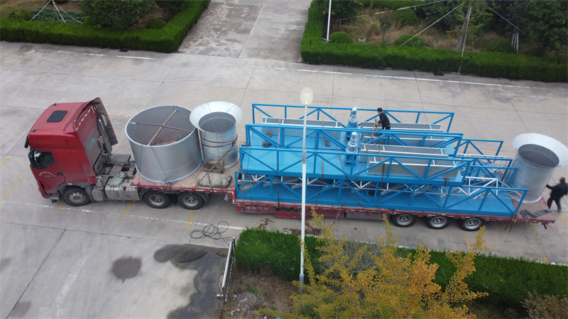第二次下沉是為了去除氧化后從水中脫落的微生物膜。垂直流動(dòng)斜管沉淀池的設(shè)計(jì)表面負(fù)荷為:2m/m2h,上升流速0.54m/s,沉淀池上部為集水區(qū),中部為沉淀區(qū),下部為滑泥斗。第二個(gè)沉淀池的停留時(shí)間為2小時(shí)。在第二個(gè)沉淀池的集水區(qū)設(shè)置潛孔出水堰,防止出水帶從表面絮凝。污泥斗傾角為45度,用空氣電梯排出沉淀污泥。