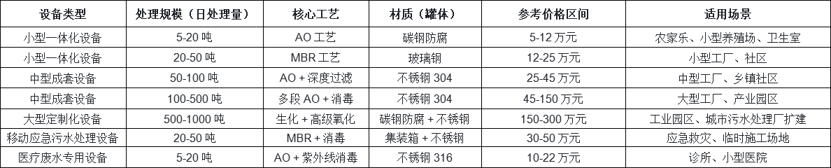 結合上述影響因素,以下為不同場景下污水處理設備的 2025 年市場參考價格(注:價格不含運費、安裝費及稅費,具體需根據(jù)實際需求核算):