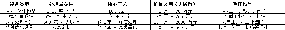 二、廢水處理設備價格參考范圍